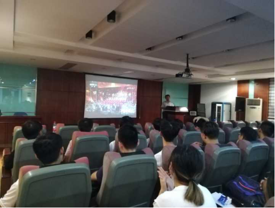 在物探楼222报告厅组织集中观看、学习,学院党委书记刘子忠、学院院长胡祥云与学生共同观看。