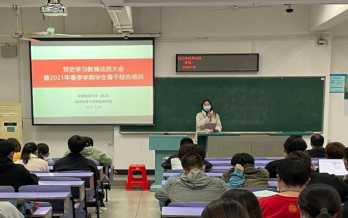 (通讯员:常文静)2021年3月25日晚,地空学院在教三楼306教室召开党史学习教育动员大会暨2021年春季学期学生骨干综合培训。学院党委副书记姜明敏、辅导员刘彦娇参加会议。大会邀请了学校应用心理学研究所所长刘陈陵老师、保卫处副处长单红峰老师和环境学院院办张学海老师分别做有关心理、安全及文稿写作培训。全体学生党支部书记,本、研学生骨干参加大会及培训。辅导员刘彦娇主持会议。