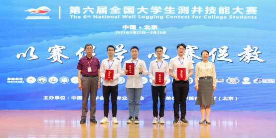 马火林副教授和曾富强副教授带队指导,由本科生马宇龙、钱权、冯亚军、刘鹏震组成的团队荣获比赛特等奖(非石油高校本科生组)。冯亚军获最佳理论知识奖,马宇龙获最佳成果报告奖,钱权获最佳答辩奖。马火林和曾富强老师荣获最佳指导老师。5月26-28日三天分别进行了测井资料处理技能实际操作比赛(比赛时间连续9小时)、理论知识考试、知识竞赛、测井资料处理结果汇报及答辩等环节的比拼。