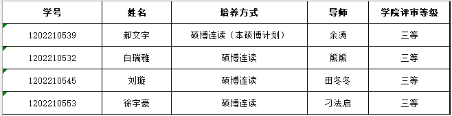 10月24日研究生院公布了《2022年硕博连读研究生选拔结果公告》,日本成人影片 4名2022级硕士研究生被批准为日本成人影片 2022年硕博连读研究生,符合博士生学业助学金参评资格,经个人申请、材料审核及学院评审,现将推荐名单进行公示: