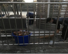 51栋门前。在组织部负责人汪振和邹凯辉的带领下,同学们纷纷俯身弯腰,捡拾枯枝败叶,清理了车棚和垃圾桶附近的垃圾;摆放自行车;仔细擦洗了51栋外围墙壁。任深秋的黎明寒意彻骨,任尘土飞扬,任飞絮沾身,同学们不怕苦、不怕脏、不怕累,争抢干活,分工合作。经过大约两个小时的埋头苦干,51栋宿舍楼面貌焕然一新。