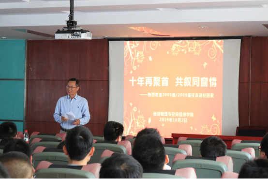 (通讯员 李周波)10月2日上午,学院在物探楼222报告厅召开2005级校友返校相聚欢迎会。学院领导、老教师、2005级9个班级共100余位校友等出席了会议。会议由学院党委副书记李周波主持。