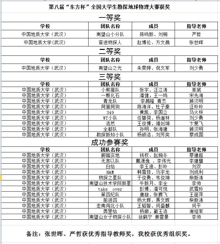 (武汉)、中国石油大学(北京)、吉林大学、东北石油大学等10家单位的团队获一等奖。