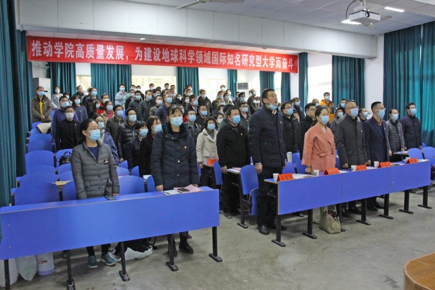 学院党委书记马彦周同志代表第三届党委作题为《谋划新发展 勇担新使命全面开启研究型学院建设发展新征程》的工作报告。报告从全面加强党的领导,党组织领导和运行机制到位;牢固树立责任意识,政治把关作用发挥到位;加强师生教育引导,思想政治工作开展到位;提升党建工作质量,基层组织制度执行到位;聚焦立德树人任务,推动改革发展到位等五个方面对上届学院党委工作进行了回顾,对学院未来的工作进行了展望。他号召全院党员更加紧密地团结在以习近平同志为核心的党中央周围,高举习近平新时代中国特色社会主义思想伟大旗帜,在学校党委行政的正确领导下,奋勇拼搏,努力向前,推动学院高质量发展,为早日建成研究型学院和地球科学领域世界一流大学作出更大贡献。