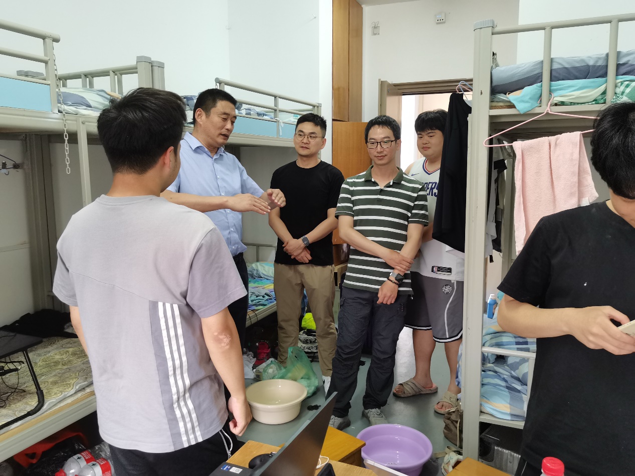 马彦周关心了解同学们生活学习情况,与同学们进行交流。并提醒同学们按时休息,调整身心状态,注意实习安全,提高学习效率。