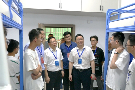 9月2日、9月3日下午,学校党委书记刘杰、纪委书记唐忠阳、党委副书记王甫、校长助理蒋少涌看望学院迎新点新生、工作人员和志愿者,并到学院本科生和研究生新生宿舍进行走访。