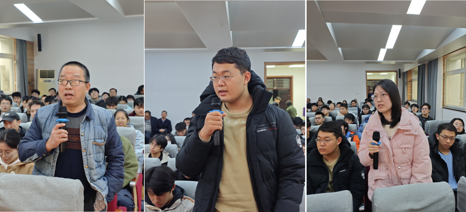 报告后,陈晓非院士与现场师生展开互动,就同学和老师们提出的不同阶次的高阶面波模式识别、反演时的基阶及高阶频散曲线权重、高阶面波的发育特点及发育环境等方面的问题给予了一一解答和深入探讨,现场气氛十分活跃。