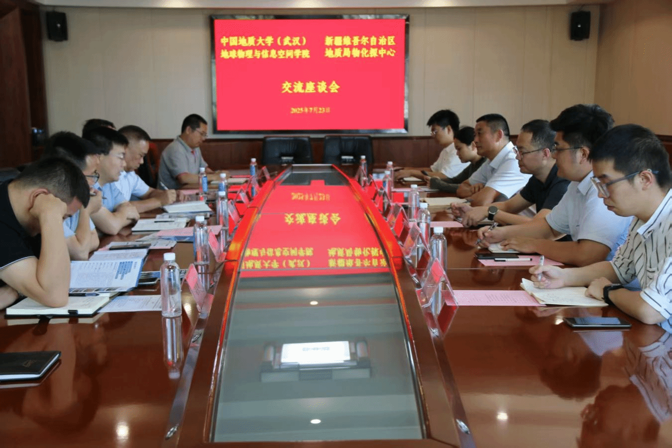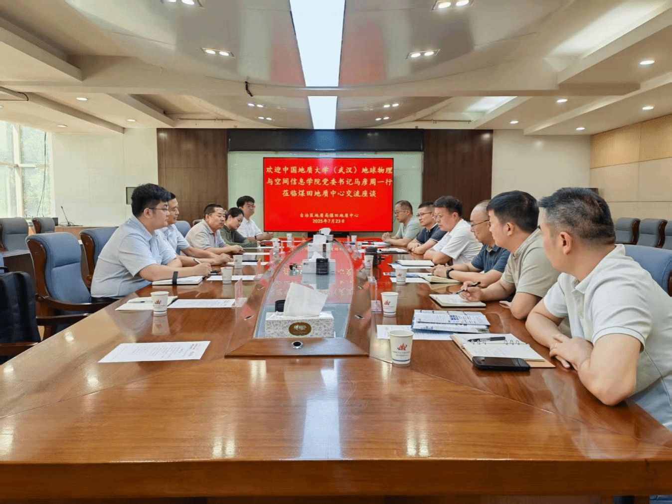 7月23日上午,马彦周一行赴新疆地质局煤田地质中心座谈交流。学院挂职教师、新疆地质局物化探中心工程物探专家昌彦君,辅导员刘鹏宇,博士生闫浩、王垚,新疆地质局煤田地质中心党委副书记、主任翟广庆,党委委员、副主任邵洪文,党委委员、副主任李国庆,地球物理勘探院工程师冷西、地球物理勘探院工程师李小磊及有关部门负责人参加会议。会上,双方就科研项目、就业服务、能力提升等方面进行深入研讨交流。