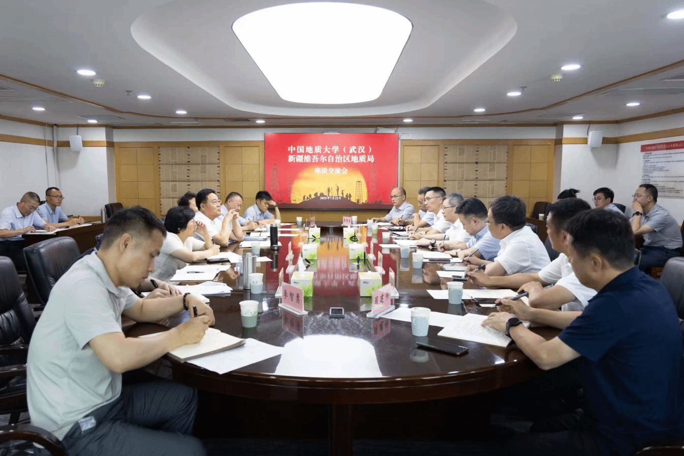 (武汉)校长李建威一行在新疆省地质调查局开展调研座谈,并看望慰问地空学院援疆挂职教师昌彦君、李智勇。下午,马彦周、严哲到中石化西北油田分公司勘探开发研究院探望校友、了解招聘需求、交流校企科研合作。