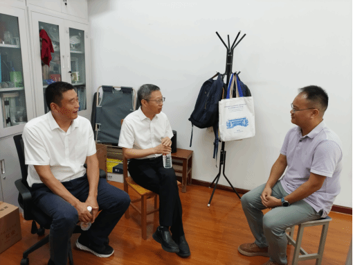 章军锋副校长与彭荣华老师进行了亲切交谈,详细询问了他的工作、生活情况,并与他围绕科研工作的开展进行深入交流。彭荣华老师向章军锋副校长汇报了自己在地球物理电磁探测领域的研究进展,阐述了电磁探测在服务国家新一轮战略找矿以及深部清洁能源探测方面的作用,重点介绍了近期在湖北英山、云南腾冲等地开展深部地热探测工作的具体情况。章军锋副校长鼓励他带领团队持续深入开展专业研究,为学校事业的发展贡献力量。