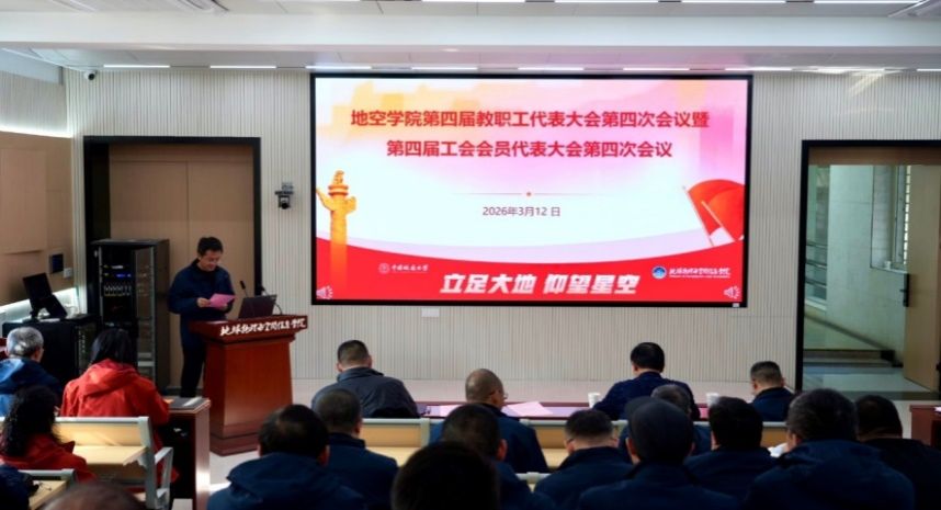 3月12日下午(通讯员张莹),学院在基础楼101报告厅召开了地空学院第四届教职工大会暨第四届工会会员大会第四次会议。校工会徐家忠副主席、学院领导班子成员和全体教职工参加了会议。大会由学院副院长蔡红柱主持 。