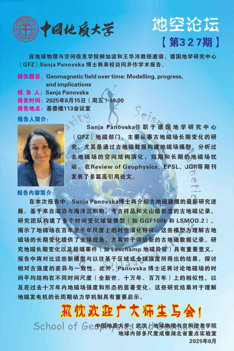 地空论坛【第327期】德国地学研究中心(GFZ)Sanja Panovska 博士