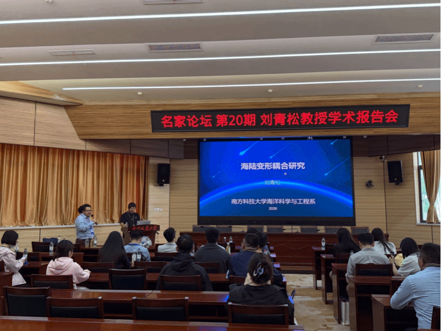 (通讯员 柳加波)4月10日下午,应地空学院罗银河院长邀请,南方科技大学海洋科学与工程系讲席教授、南科大教授会会长刘青松教授来校访问,并在八角楼学术报告厅作了题为“海陆变形耦合研究”的学术报告,全校50余位师生到场聆听讲座。